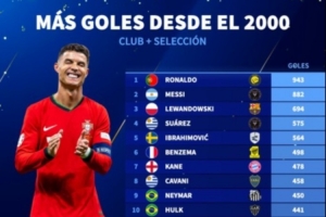 体育资讯6月11日讯 德转迎来成立25周年,该数据网站也统计了自那时(2000年)以来进球最多(俱乐部+国家队)的球员,C罗、梅西、莱万前三。
