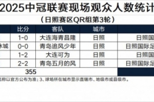 2025中冠联赛现场观众人数统计(日照赛区QR组第3轮)