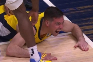 到了总决赛第三场,麦康奈尔仅用15分钟的时间就拿下10分5助攻5抢断,带领着步行者的替补军团狂轰49分,用一次又一次的串联传球和积极拼抢点燃了印第安纳的主场。场边的球迷也在这时举出了应景的标语——“It's T.J Time”,现在是麦康奈尔表演的时间了。