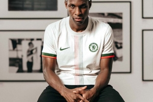 切尔西新赛季客场球衣由耐克设计生产,采用了大胆的配色方案,球衣主体白色,胸前有红绿色线条,衣领内部和袖口处都有红绿色点缀。
