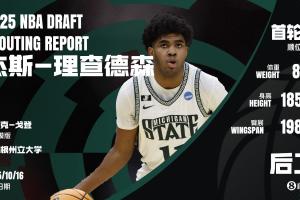 杰斯-理查德森是两届扣篮王贾森-理查德森的大儿子(弟弟贾克森-理查德森目前是五星高中生,同届排名前五,预计2027年参加NBA选秀),你很难说这是一种压力还是一种赐福。杰斯追随父亲的脚步进入了密歇根州大(贾森2000年助队获得了全国冠军),但很多人认为这并没有帮助到杰斯。密歇根州大主帅汤姆-佐伊出了名的不爱用新人,但杰斯仍然依靠自己出色的表现获得了足够多的出场时间,并成为密歇根州大1952年以来第五位大一赛季就毕业的球员。杰斯从赛季初期的纯射手打法开始,通过努力慢慢获得了更多处理球的机会,凭本事获得了更多展示技能的机会。虽然杰斯体型偏小,但他继承了父亲出色的身体控制能力,加之坚韧的品质和冷静的头脑,杰斯展现了超出自己年龄的成熟。杰斯有能力也有潜力,接下来他需要做的就是,明确自己究竟要在职业赛场上,成为一个什么样的球员。从过去的经验来看,身材矮小的双能卫这条路并不好走。