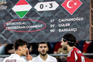 此外,居勒尔还在这则社媒上方的比分图里做了一些小小的改动,在记分牌匈牙利队下方添加了“索博斯洛伊:1条社媒评论”的内容。