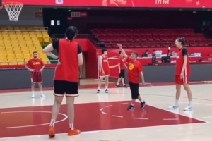 上午训练时,女篮主帅宫鲁鸣指导韩旭和张子宇演练了高举高打,其中一次配合张子宇传球给低了,宫鲁鸣大喊:“太低了。”