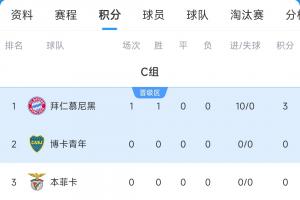 体育资讯06月16日讯 世俱杯小组赛C组第1轮,拜仁10-0狂胜奥克兰城,先赛登顶小组头名,奥克兰城则排名垫底。