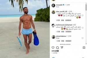 萨拉赫迎来了假期,他在社交媒体上晒出自己在海滩度假的照片,这位利物浦前锋笑容灿烂,看起来心情很不错。
