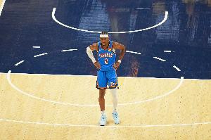 总决赛至今,亚历山大场均出战39.5分钟,能够得到32.8分5.3板3.8助2.5断1.3帽。