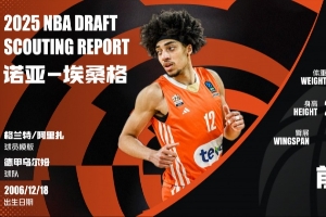 体育资讯06月17日讯 距离2025年NBA选秀大会还有9天,ESPN知名选秀专家Jonathan Givony公布了第二批“小绿屋”邀请函,新增6人分别是:诺亚-埃桑格、科林-穆雷-博伊尔斯、托马斯-索伯、利亚姆-麦克尼利、诺朗-特拉奥雷和威尔-莱利。
