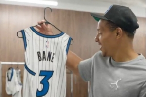 今天,魔术官方连晒3段视频,贝恩已来到魔术球馆,他满面笑容地举起自己的新球衣。