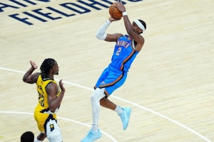 体育资讯6月17日讯 NBA总决赛G5,雷霆半场59-45领先步行者。