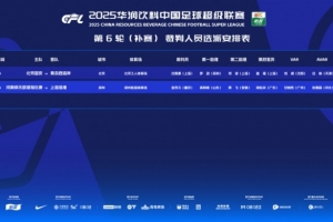 体育资讯6月17日讯 中足联公布了中超第6轮补赛的裁判人员安排名单,沈寅豪将执法国安vs西海岸,金京元将执法河南vs海港。