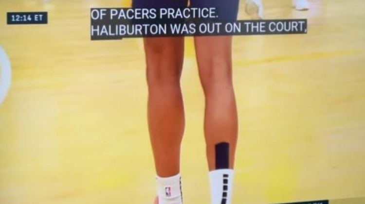 运动医学专家Evan Jeffries晒出了赛前热身时右小腿贴着运动胶带的视频,并表示:“根据视频的位置,哈利伯顿可能患有小腿(比目鱼肌/跟腱)问题。步行者称他是‘小腿伤病’,卡莱尔说他‘有些’不适。”