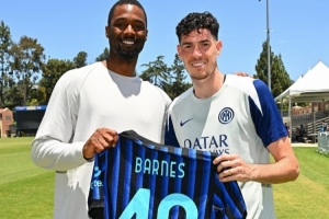 体育资讯6月17日讯 目前国际米兰正在积极备战世俱杯首轮的比赛,今日NBA马刺球星巴恩斯造访国米训练营,国米后卫巴斯托尼向其赠予40号球衣,并合影留念。