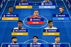 1-姆巴佩(皇马)、哈兰德(曼城)、贝林厄姆(皇马),1.8亿欧
