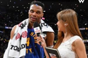 此图出自掘金对阵快船G7赛后,当时威斯布鲁克接受采访时表示:“我能在这里打球是一种恩赐,我现在还能在每场比赛中登场、从事我喜爱的篮球运动。我在中国的球迷朋友们,感谢你们、太爱你们了。我想见你们了,多保重哈!”