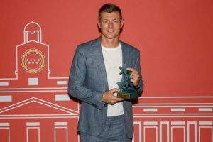 在马德里皇家邮政大楼举行的颁奖典礼上,克罗斯接受了2023年度马德里社区体育七星奖。该奖项旨在表彰在2023年表现最出色的男性运动员。