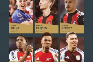 体育资讯6月19日讯 PFA列出了年度最佳年轻球员评选前6名(由球员评选),德拉普、怀森在列。