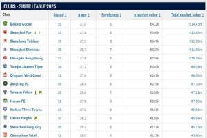 体育资讯06月19日讯 转会市场网2025年中期中国身价例行更新今天完成,对比上次更新,各俱乐部的身价发生了不少变化。