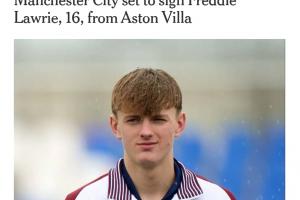 体育资讯6月19日讯 The Athletic报道,曼城即将在弗雷迪-劳里的奖学金合同到期后,从阿斯顿维拉签下这位16岁新星以加强青训梯队。