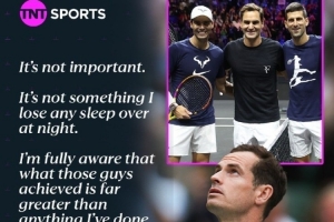 穆雷表示:“费德勒、纳达尔、德约取得的成就远远超过了我,很多人说我不是巨头,我完全理解,我不会因为这些评论就睡不着,我知道我和他们不处于同一水平。”