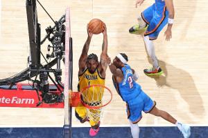 体育资讯6月20日讯 步行者108-91战胜雷霆,将大比分扳平。赛后,步行者球员托平接受媒体采访。