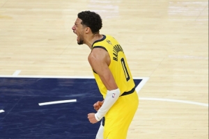 本场,哈利伯顿出场22分52秒,12投5中(三分7中3),罚球1中1,拿到14分1篮板5助攻2抢断,正负值+25是全场最高。