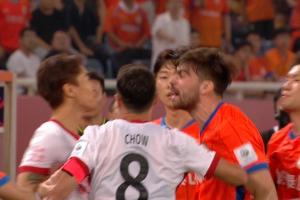 体育资讯06月20日讯 泰山vs蓉城第62分钟,泽卡被杨明洋放倒,随后韦世豪跟上一脚解围正好踢到泽卡身上!双方随即爆发冲突!