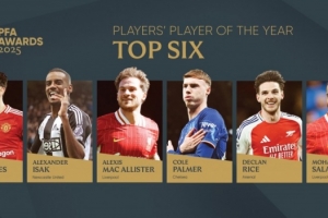 2024-25赛季PFA年度最佳球员六强名单已由会员投票产生,获奖者将于8月19日在曼彻斯特举行的第52届PFA颁奖典礼上揭晓。