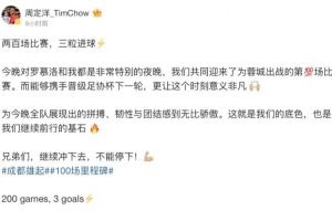 赛后蓉城队长周定洋更新社媒,晒出多张比赛照庆祝比赛胜利,他为照片配文写道:
