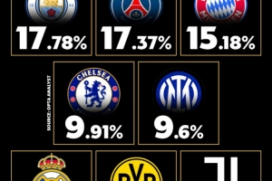 体育资讯6月22日讯 世俱杯正在美利坚如火如荼地进行中,据Opta数据统计,本届世俱杯夺冠最大热门是曼城17.78%,新科欧冠冠军排名第二17.37%。