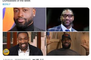 体育资讯06月22日讯 推特上著名的科比球迷自媒体Olympic Bean今日晒出韦德、麦迪、阿里纳斯、詹姆斯四人照片,怒喷他们四人是“本周最笨笨蛋”。