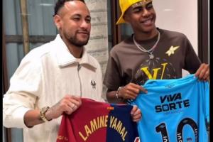 体育资讯06月22日讯 今日,巴萨官方晒出内马尔与亚马尔互换球衣合照,并配文:“天才认可天才”。