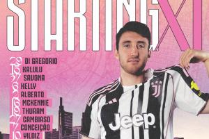 尤文首发:29-迪格雷戈里奥、2-阿尔贝托-科斯塔、6-凯利、15-卡卢卢、27-坎比亚索、37-萨沃纳、16-麦肯尼、19-凯夫伦-图拉姆、7-小孔塞桑、10-伊尔迪兹、20-穆阿尼
