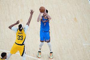 体育资讯6月23日讯 NBA总决赛G7,雷霆半场47-48落后步行者。