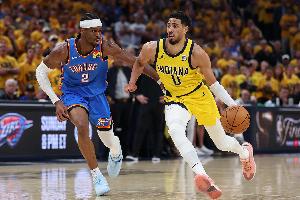 体育资讯6月23日讯 NBA总决赛G7,雷霆半场47-48落后于步行者。