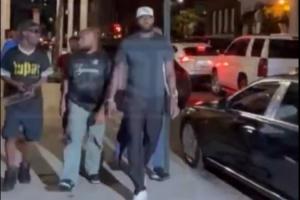 TMZ今日凌晨获取了一段詹姆斯走在街头的视频,视频中纽约的球迷给詹姆斯送上了嘘声和怒骂:“滚出这里!滚回洛杉矶!别来纽约!勒布朗,XXXX!你永远成为不了乔丹,XXXX,或者科比!XXXXXXXX!滚出这里!”