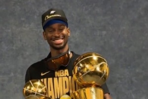 赛后,亚历山大手捧总冠军奖杯和FMVP奖杯拍了定妆照。