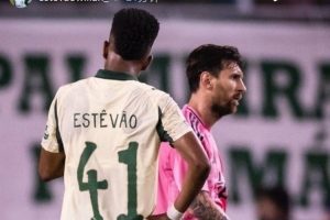 埃斯特旺半场结束时与梅西互换球衣,赛后他在社交媒体上晒出与梅西的赛场合照,分享与偶像同场竞技的喜悦之情。