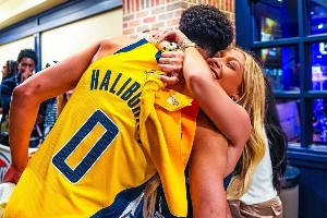 “你们让人们脸上绽放笑容,你们给这座城市带来欢乐与兴奋。你们的表现简直棒极了!(哈利)你是如此的无私、勇敢和坚强!我们拥有最棒的支持体系,他们会帮助你渡过难关!我将永远是你最大的啦啦队长。我将永远为你感到无比骄傲!!我们的球队永远支持你。我们会回来的,我们还没结束呢!天意自有安排,时机终将到来 💛 我的超级巨星,我爱你 #0 #Overratethat”哈利伯顿女友Jade写道。