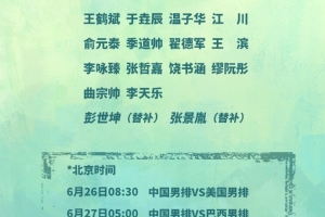 体育资讯6月25日讯 中国男排公布了世界男排联赛第二站美国站的参赛名单,其中队长江川领衔,张景胤、彭世坤替补。