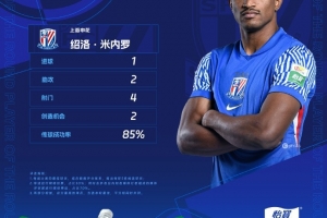 体育资讯4月2日讯 上海申花外援米内罗收获第3轮中超最佳球员,球员本人表示这是全队共同努力的结果。