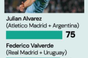 体育资讯06月25日讯 随着马竞出局,阿尔瓦雷斯彻底结束本赛季的比赛。据统计,24/25赛季小蜘蛛一共出战了马竞+阿根廷75场比赛。