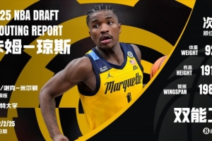次轮即战力!卡姆-琼斯:23岁马奎特技术流双能卫 运动能力成短板