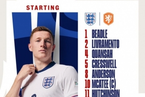 英格兰U21vs荷兰U21首发:宽萨、麦卡蒂先发,哈托、马特森出战