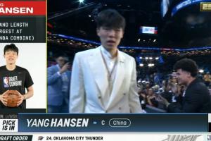 体育资讯06月26日讯 刚刚,杨瀚森在第16顺位被开拓者选中。