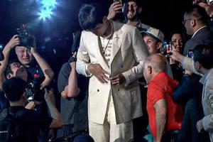 今天选秀之前,杨瀚森没有收到“小绿屋”的邀请,因此,当他被选中时,他是从观众席上走下来的。