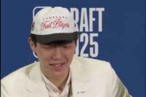 体育资讯6月26日讯 NBA选秀大会,中国球员杨瀚森在首轮第16顺位被开拓者选中。结果出来后,杨瀚森接受了媒体的采访。