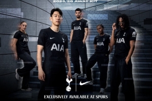 热刺官方发布2025-2026赛季客场球衣,这款球衣由耐克设计,主色调为黑色,赞助商、耐克标志和队徽为白色。
