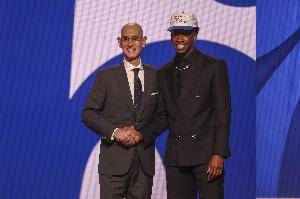 体育资讯6月26日讯 NBA2025年选秀大会,费城76人用3号签选择了来自巴哈马的天才VJ-埃奇库姆。