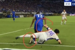 赛后,一张中超联赛官方摄影机构抓拍的天津津门虎球员郭皓飞踹李可的照片,被大家广泛转发。这一幕或许在武打片里经常可以看到,但类似“佛山无影脚”动作,在足球场上是被严令禁止的。如果不是李可反应快,下意识地有一个自我保护的动作,不排除重伤的可能。可是,当值主裁只是向郭皓出示黄牌警告。即便金京元因为郭皓最后有一个收腿动作,同时没对李可造成实质性伤害,所以只是黄牌警告,但如果金京元在郭皓对特谢拉犯规时就按照规则,出示黄牌警告的话,郭皓当时就两黄变一红,被红牌罚下了。