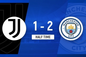 上半场比赛结束,曼城暂时2-1领先尤文图斯。